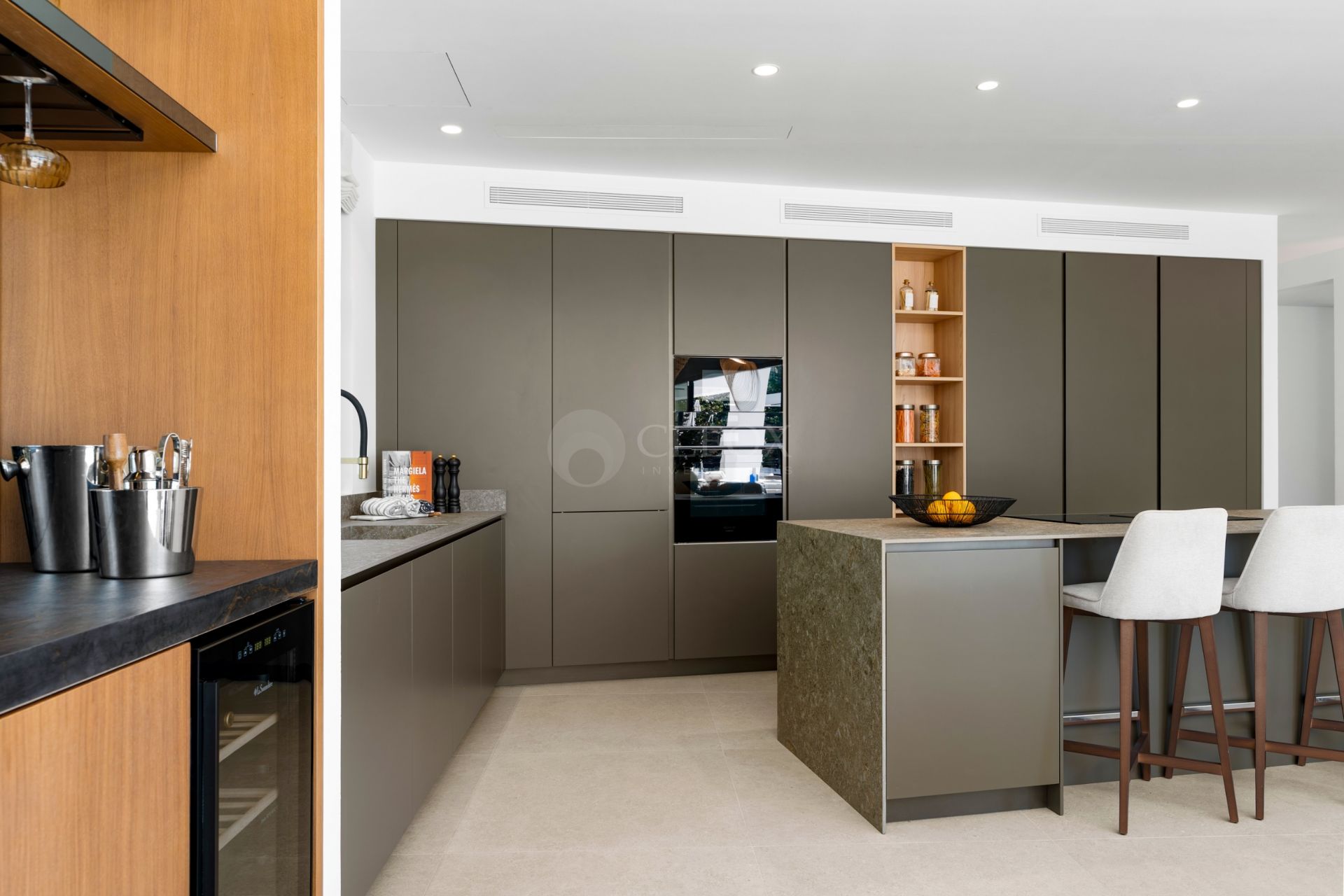Designed for modern living, the villa stands out for its seamless indoor-outdoor flow, with spaces created for everyday comfort and for enjoying time with family and friends. The main living level makes an immediate impression with 3.5-metre-high ceilings, enhancing the sense of volume and architectural elegance. The open-plan living and dining area integrates with a modern kitchen and opens directly onto the pool and outdoor entertainment areas, reinforcing the lifestyle appeal of a high-end villa on the Costa del Sol.