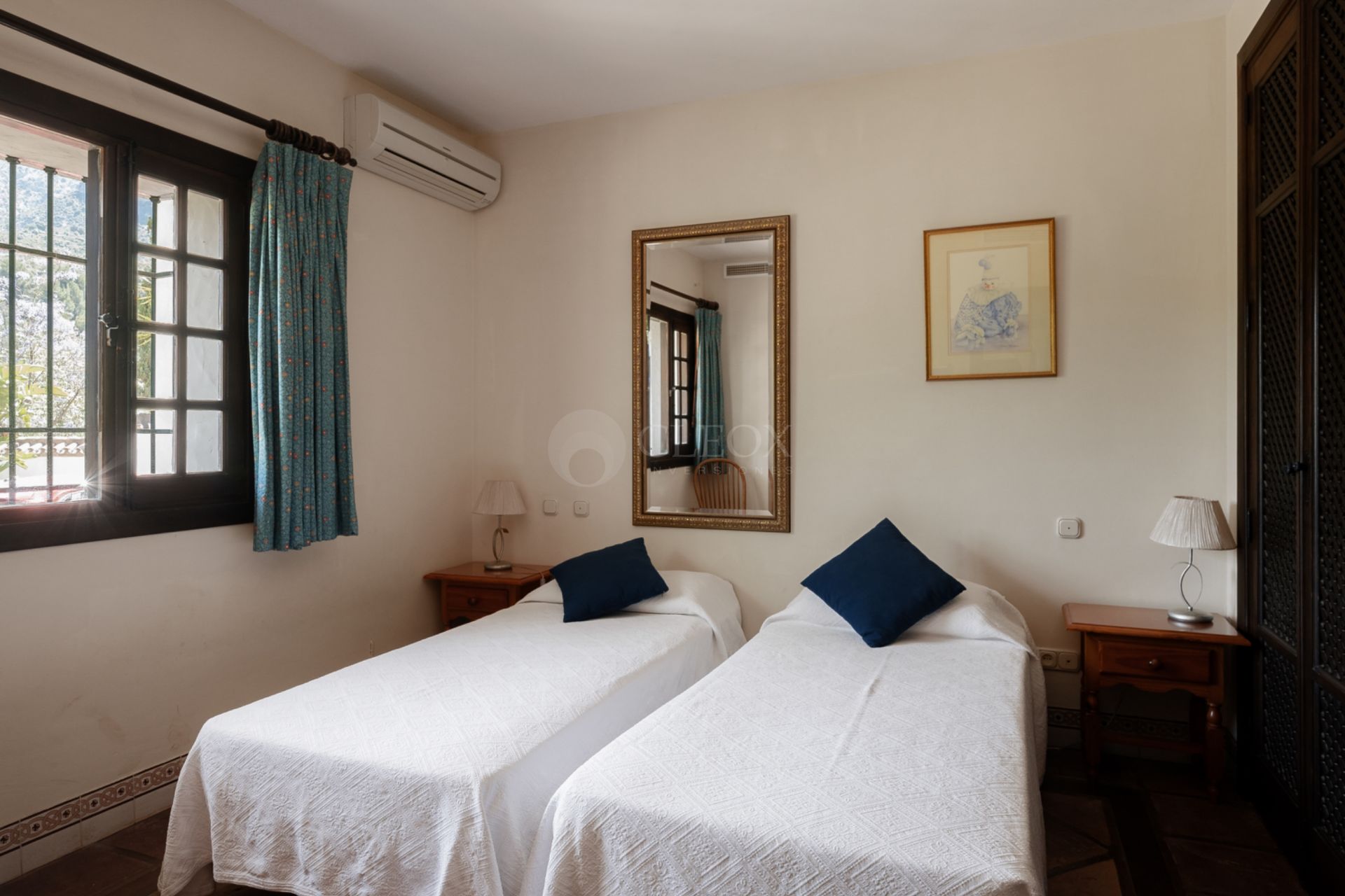 The villa features six spacious bedrooms, plus a charming tower ideal for a seventh bedroom, office, or creative studio. The open-plan living and dining area opens onto a panoramic terrace that frames stunning lake views. At its heart lies a traditional Andalusian courtyard with a fountain and sculptures, adding serenity and character.