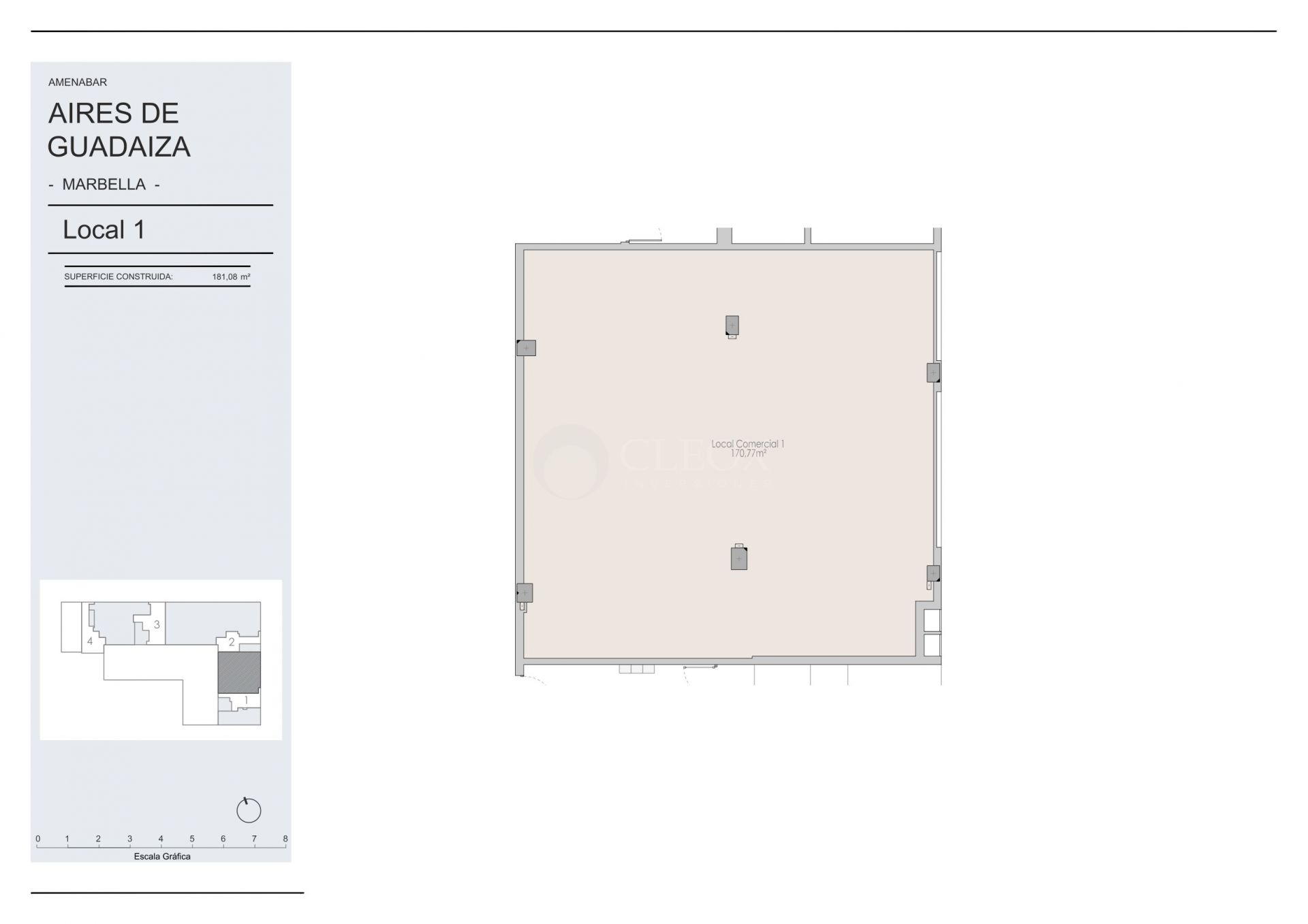 For rent this ground-floor commercial premises, located in the newly built Aires de Guadaiza development, in the popular residential area of La Campana, Nueva Andalucía. With 181 m² built and 170 m² usable, the space is offered in shell condition, completely open-plan and ready to be adapted to any business concept.