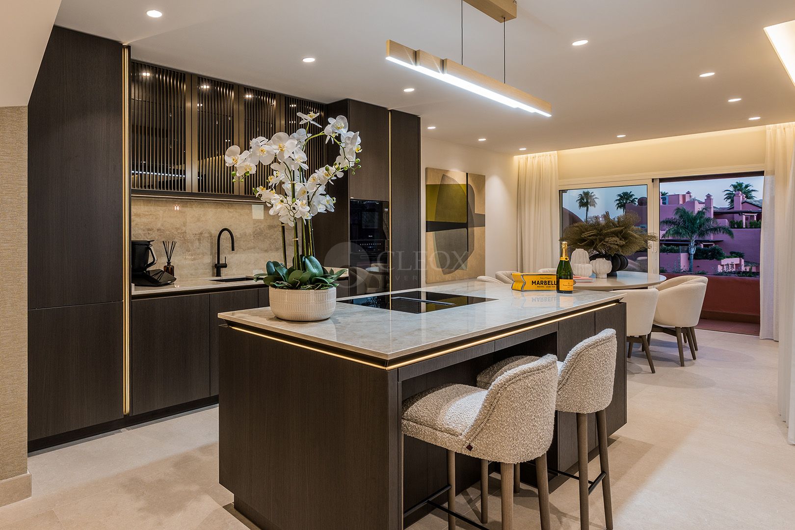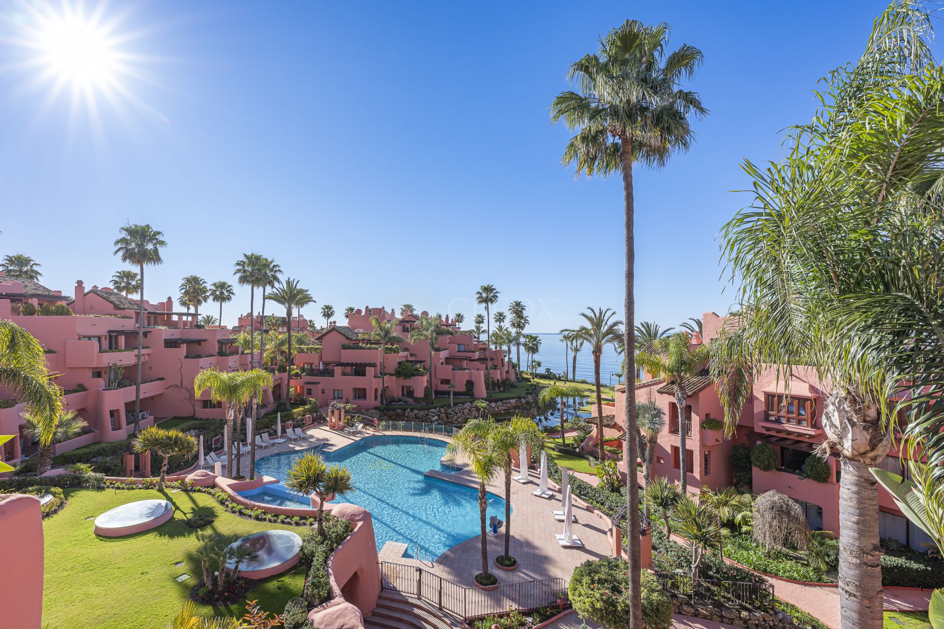 Located frontline to the beach within the exclusive gated community of Cabo Bermejo, this fully renovated duplex penthouse offers a prime opportunity for international buyers seeking a luxury second residence on the Costa del Sol or a secure beachfront investment. Set on the New Golden Mile, between Marbella and Estepona, the property combines privacy, 24-hour security and direct beach access.