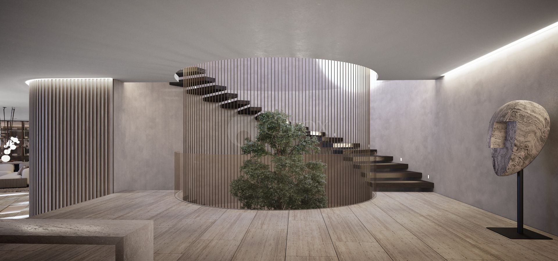 The project has been designed by ARK Architects, renowned for their expertise in bio-architecture and bespoke luxury villas. The home adapts organically to the landscape, prioritising natural light, energy efficiency and seamless indoor-outdoor living. The architecture responds to the land, optimising orientation, views and comfort throughout the year.
