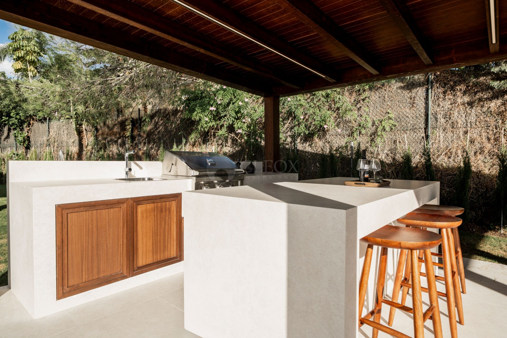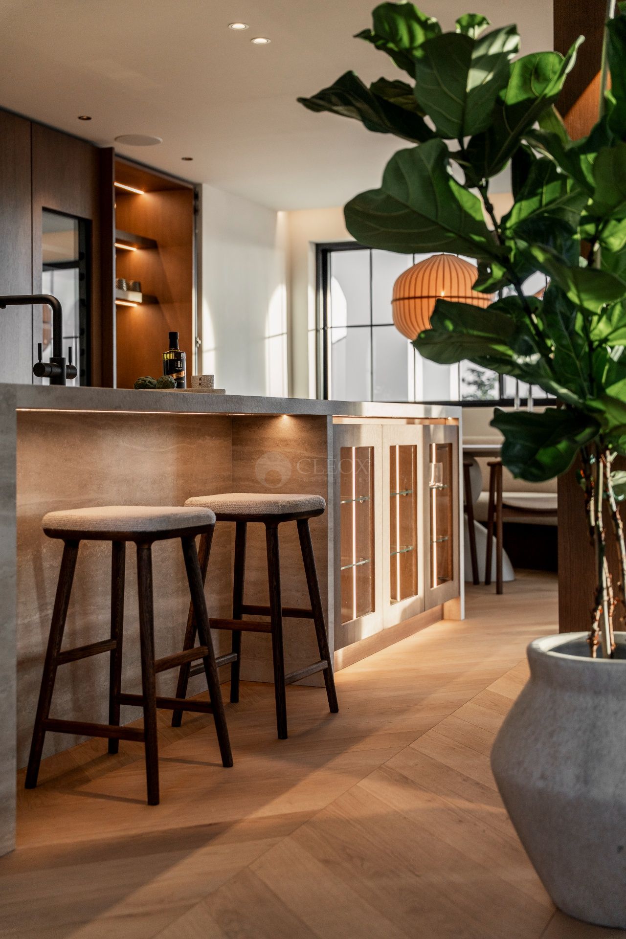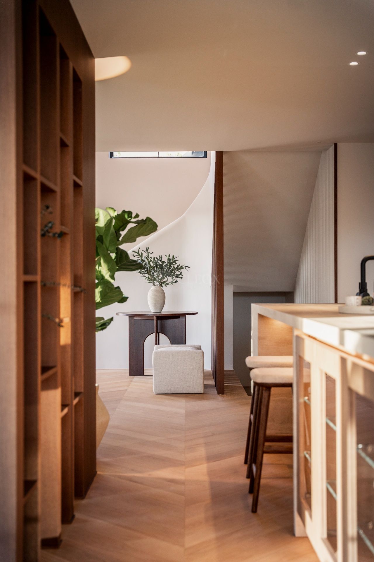 The property offers elegant and functional architecture, enhanced by a refined selection of materials that bring warmth and sophistication. Chevron wooden floors flow through the main living areas, while the Danespan kitchen, with its clean lines and high-end equipment, becomes the natural centre of family life and entertaining.