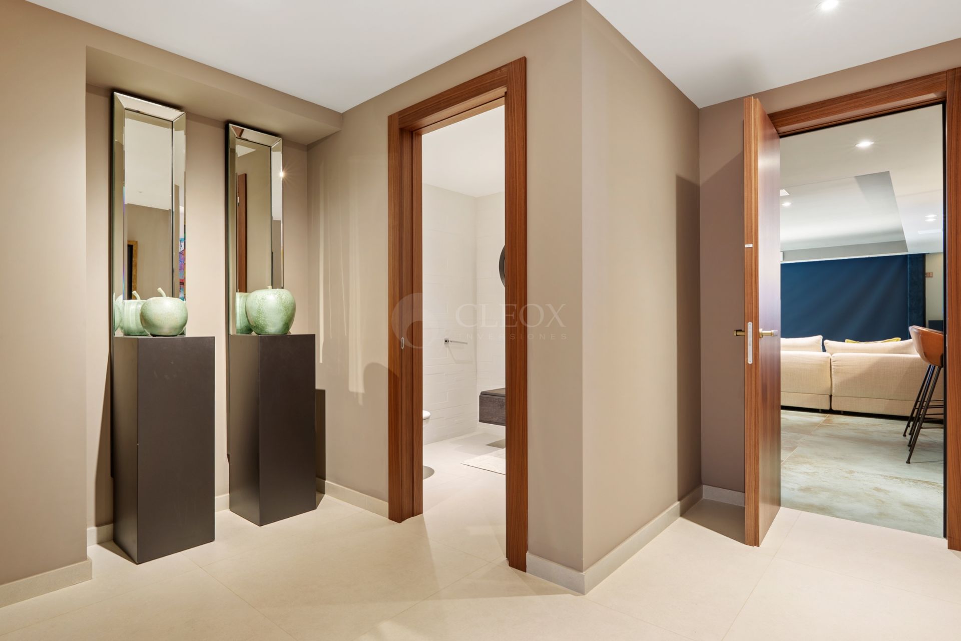The villa enjoys a south-facing orientation, ensuring abundant natural light throughout the day and spectacular views of the Mediterranean coastline. Large floor-to-ceiling windows and open living areas create a seamless connection between indoor spaces and outdoor terraces, allowing residents to fully enjoy the climate and lifestyle of Marbella.