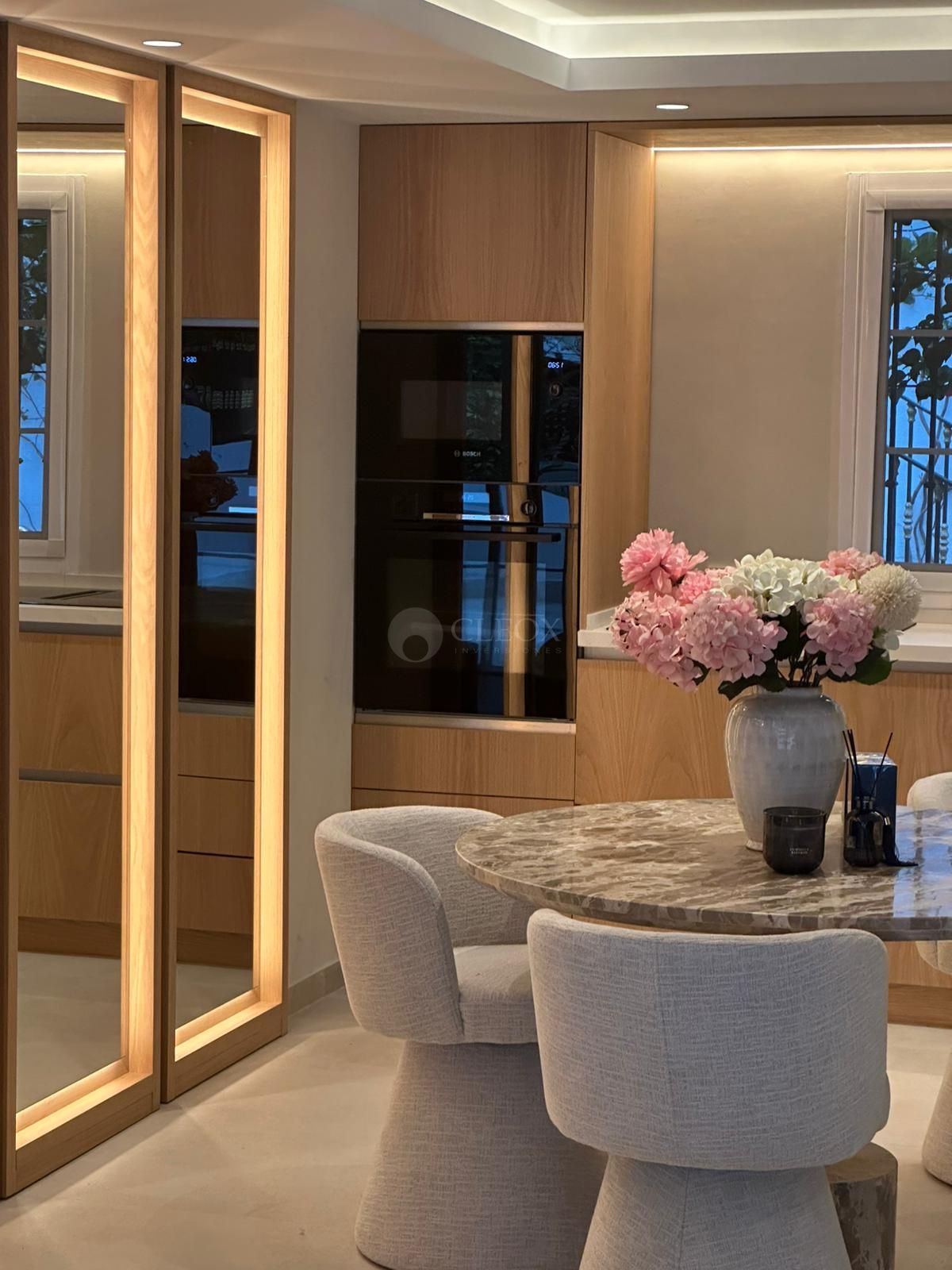 Fully renovated with a modern and functional design, the property is distributed across three levels and approximately 150 sqm. The main living area offers a bright open-plan layout where a contemporary kitchen flows seamlessly into the dining and living spaces—perfect for both everyday living and entertaining. Large doors open onto a generous private terrace with an outdoor kitchen, ideal for enjoying the Mediterranean lifestyle all year round.