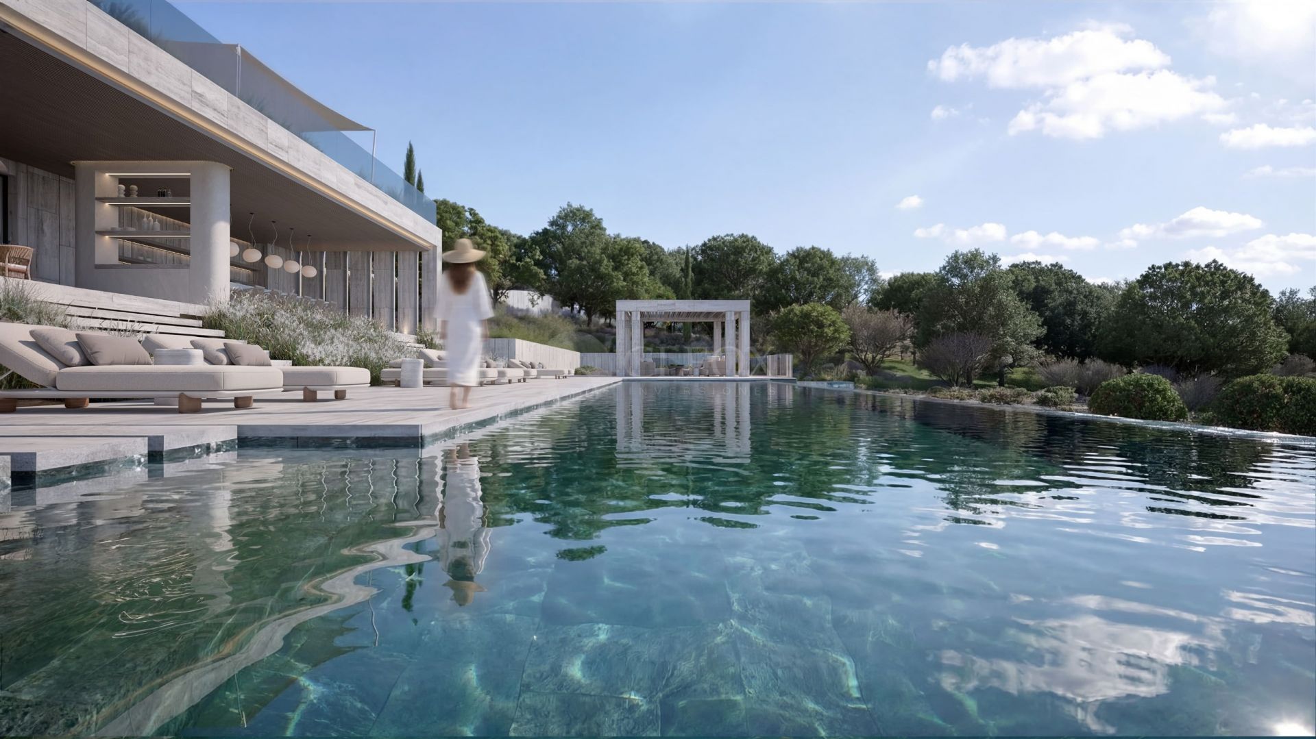 In total, over 3,980 m² built on a 10,451 m² plot, including an outdoor infinity pool, chill-out areas and spaces designed for both relaxation and entertainment.
