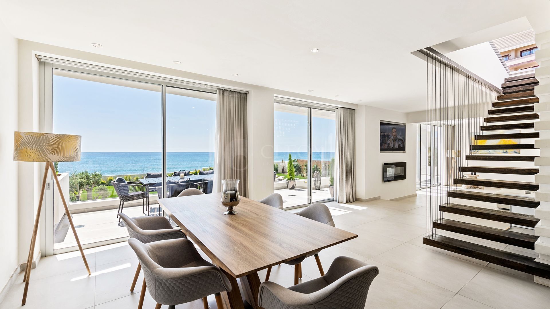 The property features 5 en-suite bedrooms, including a prime master suite with direct terrace access and uninterrupted sea views. The open-plan living, dining, and kitchen areas create a refined yet practical environment for both everyday living and entertaining.