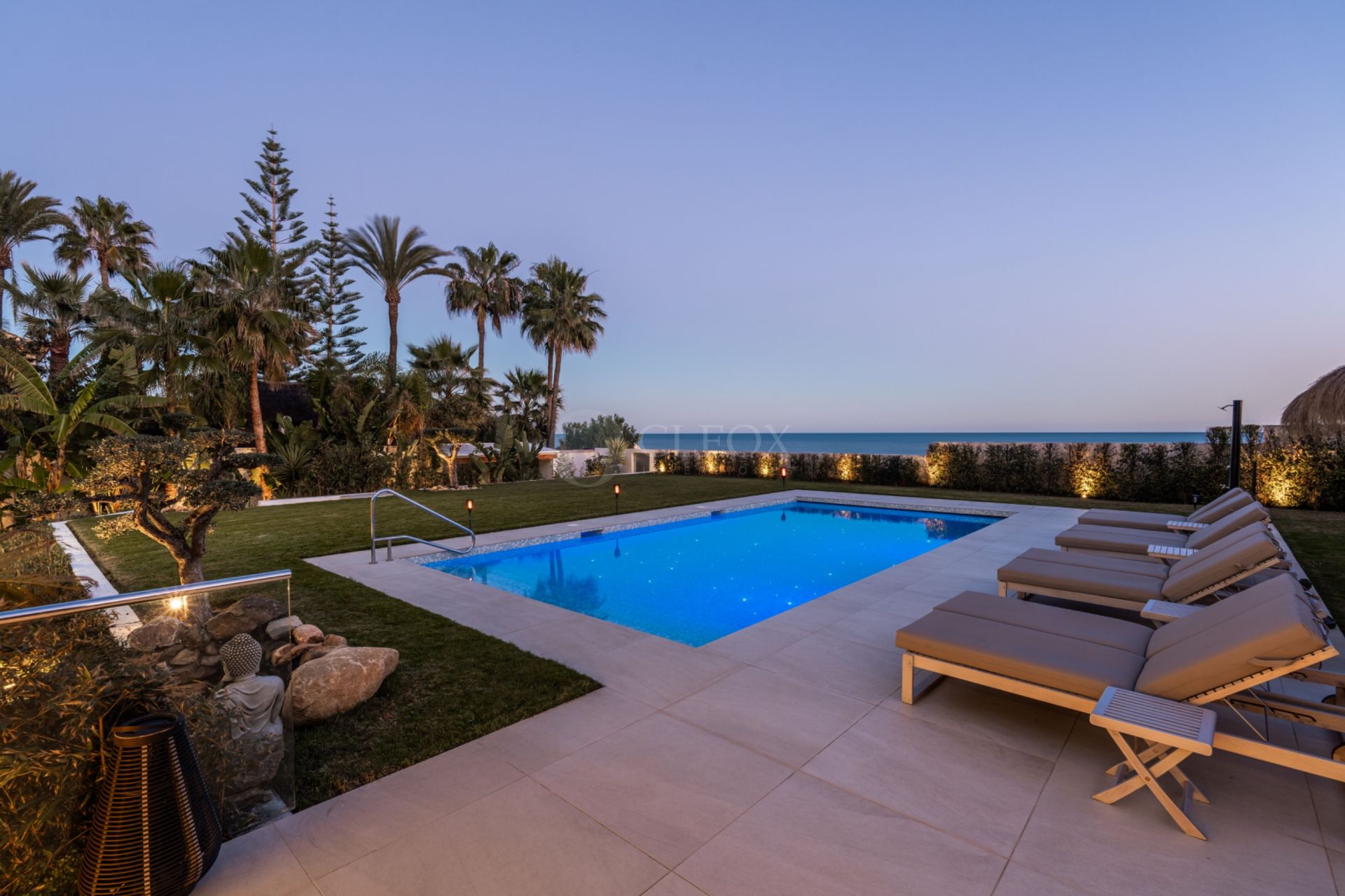 Set on a 1,036 sqm plot with 320 sqm built, the villa is designed to fully embrace its beachfront position. Floor-to-ceiling windows connect indoor and outdoor living, filling the home with natural light and panoramic sea views.
