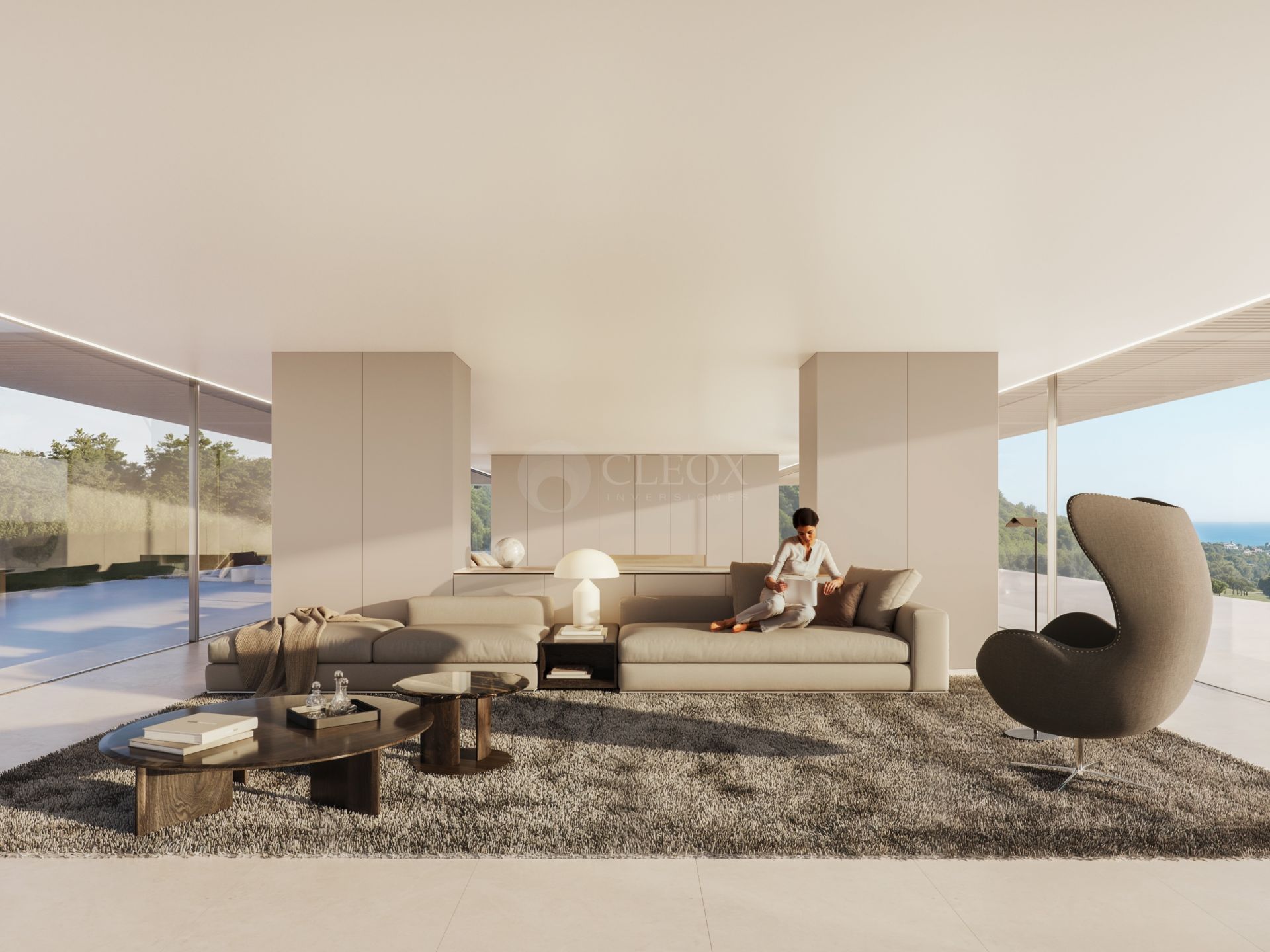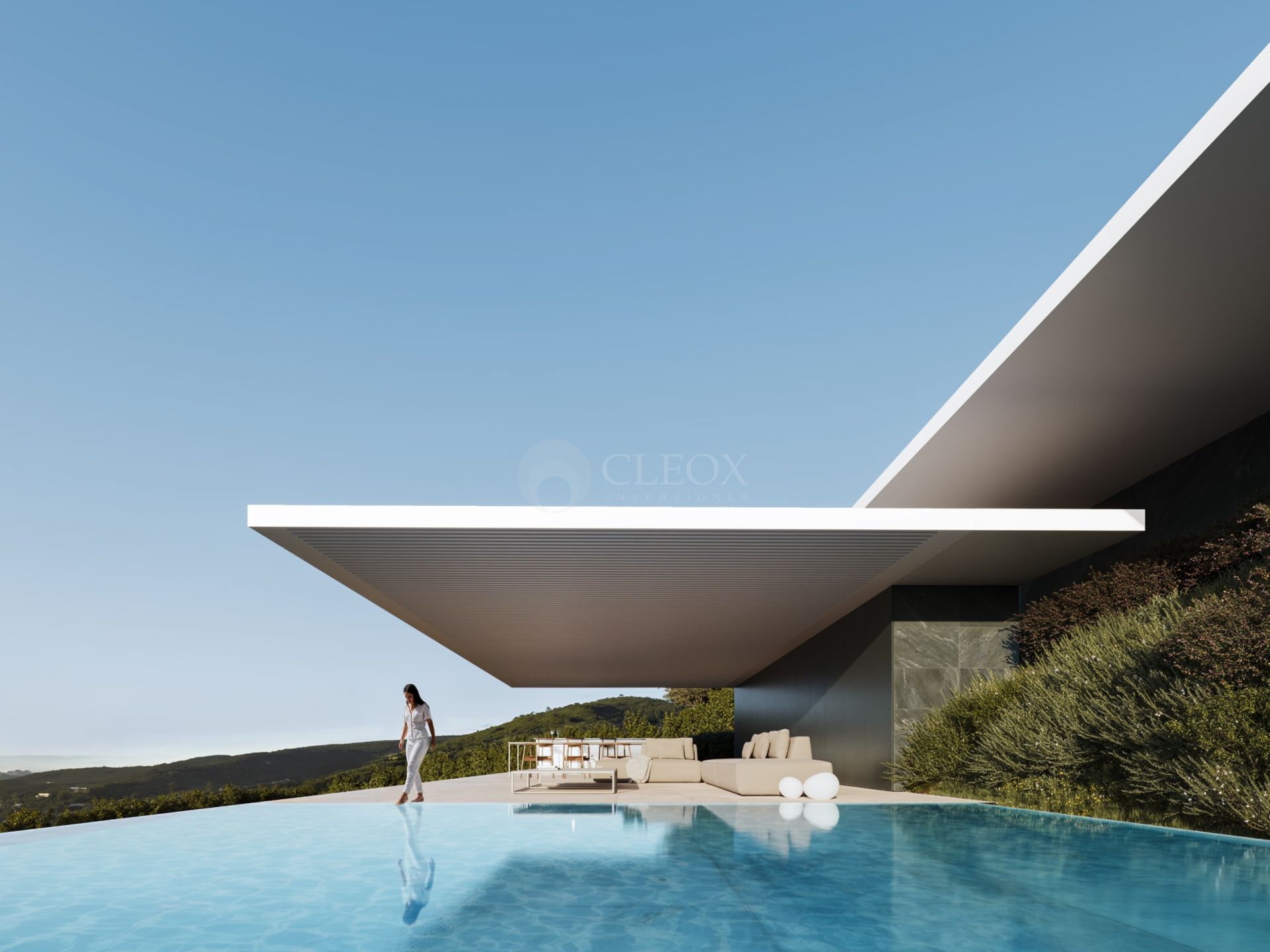 Materiales nobles como piedra natural, carpinterías minimalistas y mobiliario integrado a medida crean un ambiente elegante y atemporal. Todo ello en un enclave rodeado por el Parque Natural de los Alcornocales y cerca de colegios internacionales, clubes deportivos, puertos deportivos y los mejores campos de golf de Europa, como el Real Club Valderrama