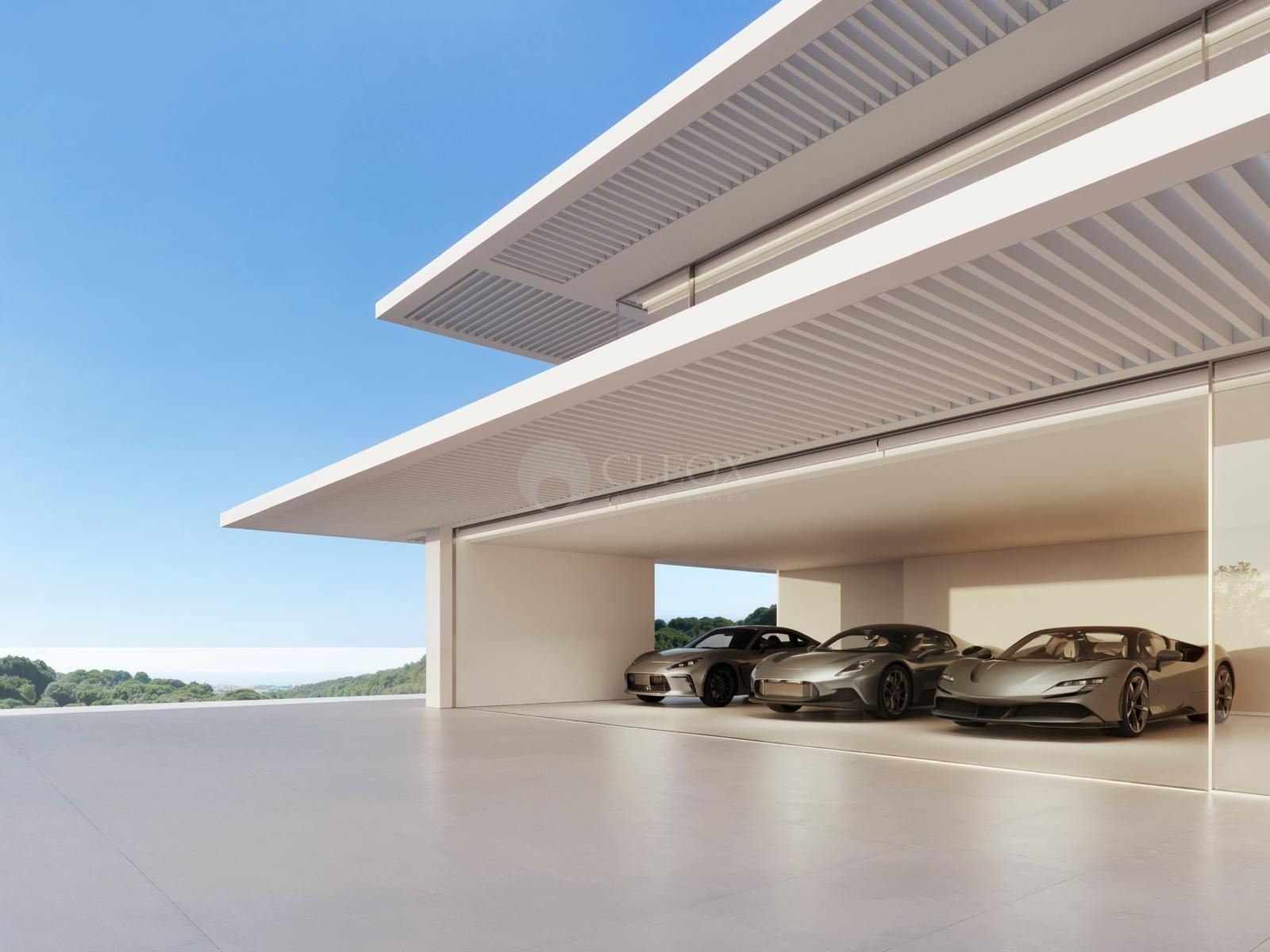 Distribuida en tres plantas, la villa ofrece 5 dormitorios en suite, dos principales de gran amplitud, un elegante salón con vistas panorámicas, doble cocina (preparación y showcooking), y espacios exteriores diseñados para el bienestar. La planta baja concentra la zona de noche y un garaje interior para tres vehículos, mientras que el nivel inferior alberga un spa privado con piscina climatizada, gimnasio, sauna, cine, bodega y amplias zonas sociales junto a la piscina exterior tipo “beach entry” y un impresionante espejo de agua