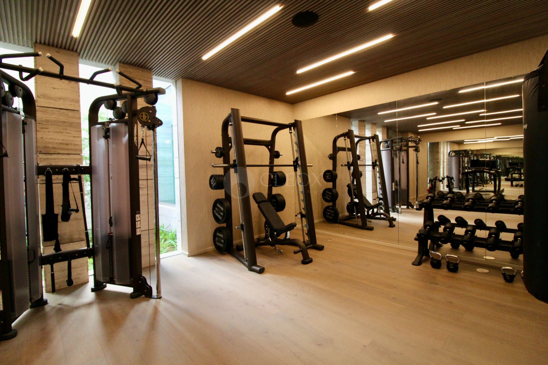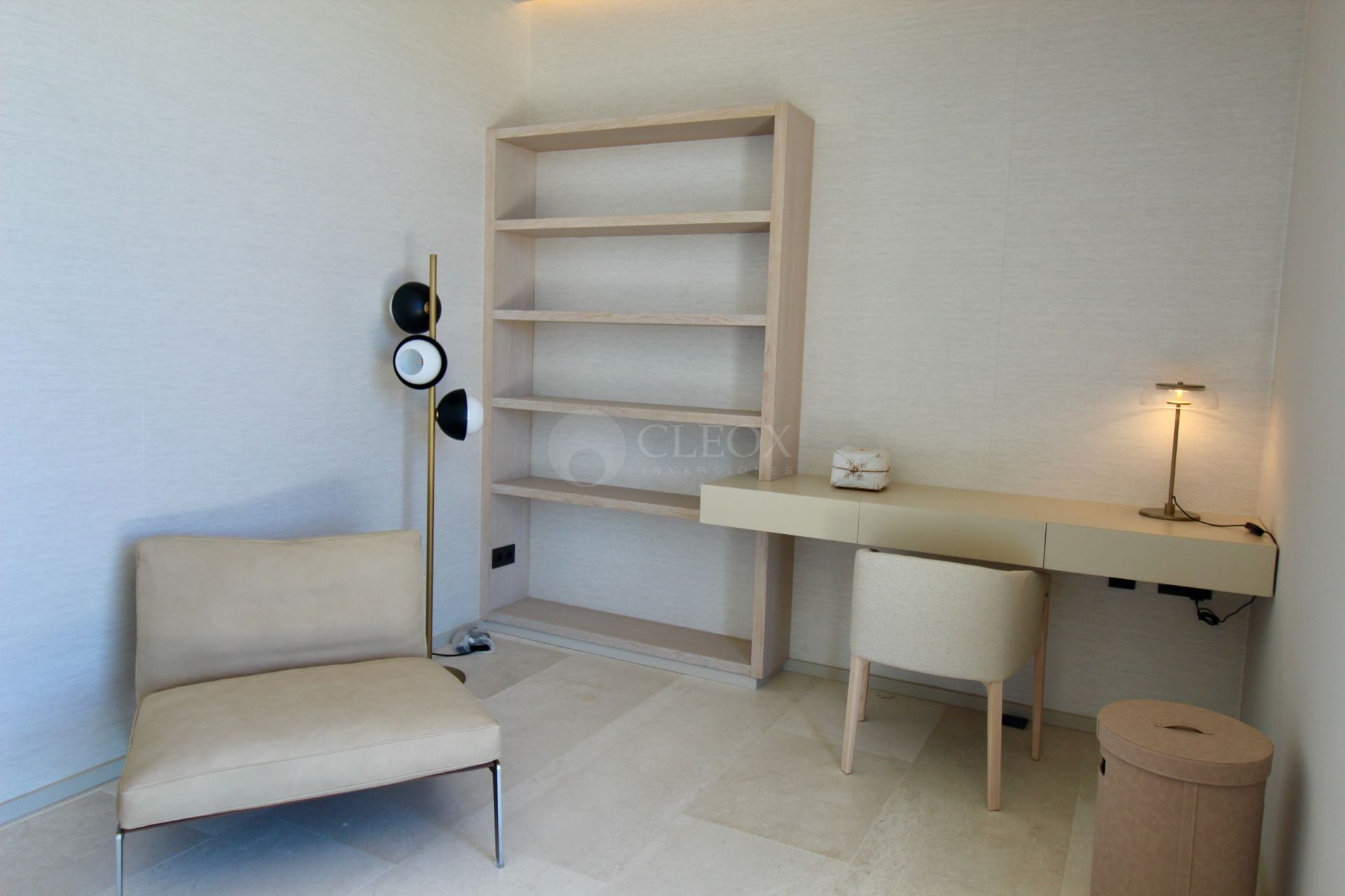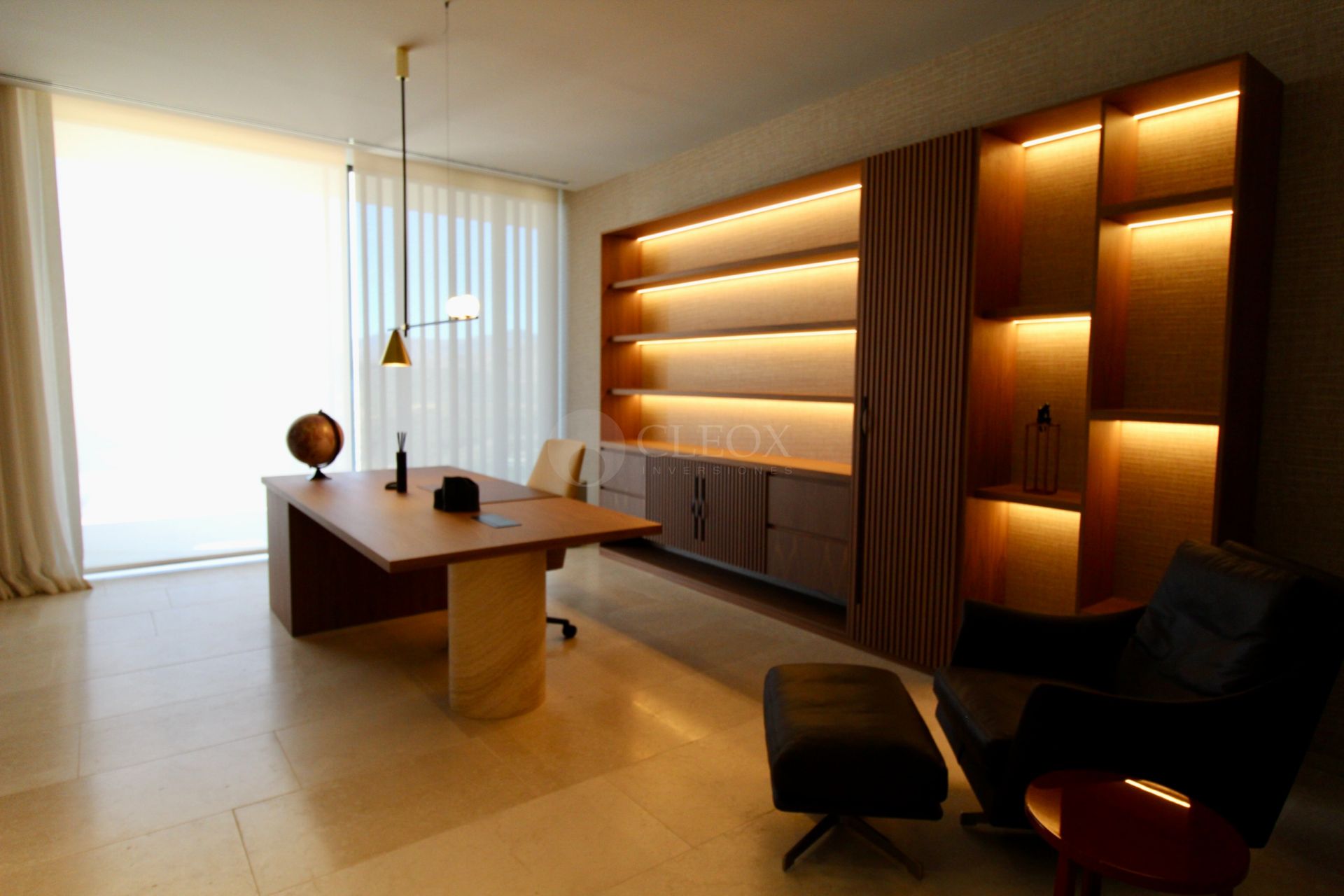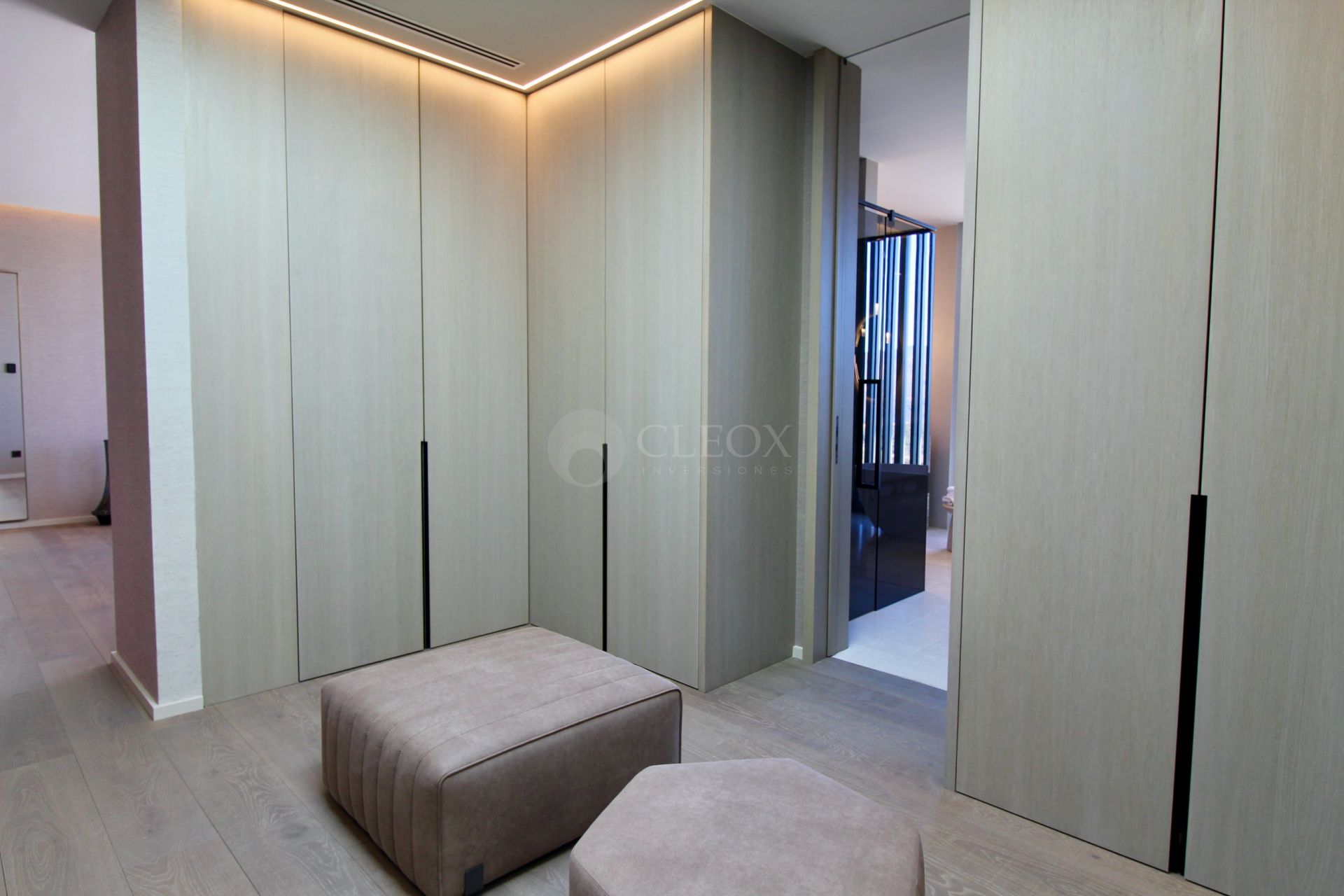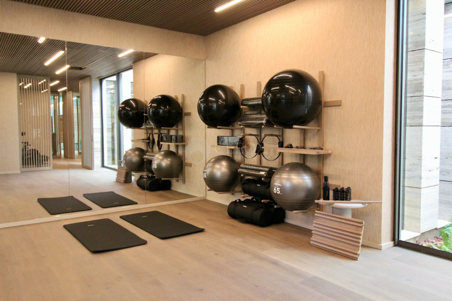 La planta inferior está dedicada al bienestar: piscina interior climatizada, jacuzzi, sauna, baño turco, sala de yoga, masajes y bodega profesional. Además, hay dos dormitorios con jardín, un apartamento independiente para invitados o personal, lavandería y un garaje para ocho coches. En la entrada de la villa hay una pérgola con espacio para aparcar cómodamente 3 coches.
