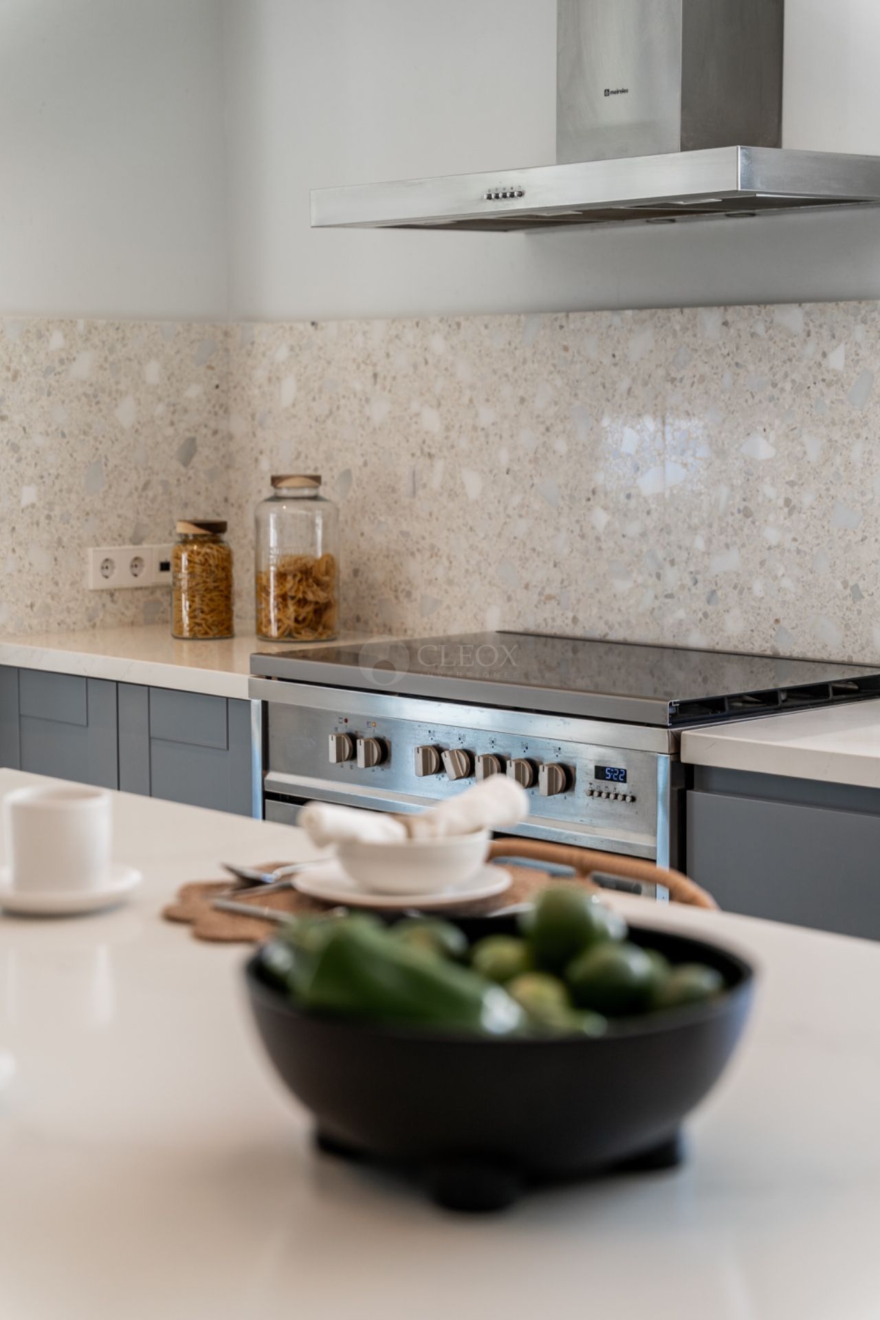 La vivienda destaca por su arquitectura contemporánea y sus amplios espacios abiertos bañados por luz natural. El salón y el comedor fluyen hacia grandes terrazas con vistas al Mediterráneo, creando una experiencia de vida interior-exterior perfecta para el clima de la Costa del Sol. La cocina moderna con isla central es el corazón de la casa, ideal para el día a día y para recibir invitados con estilo.