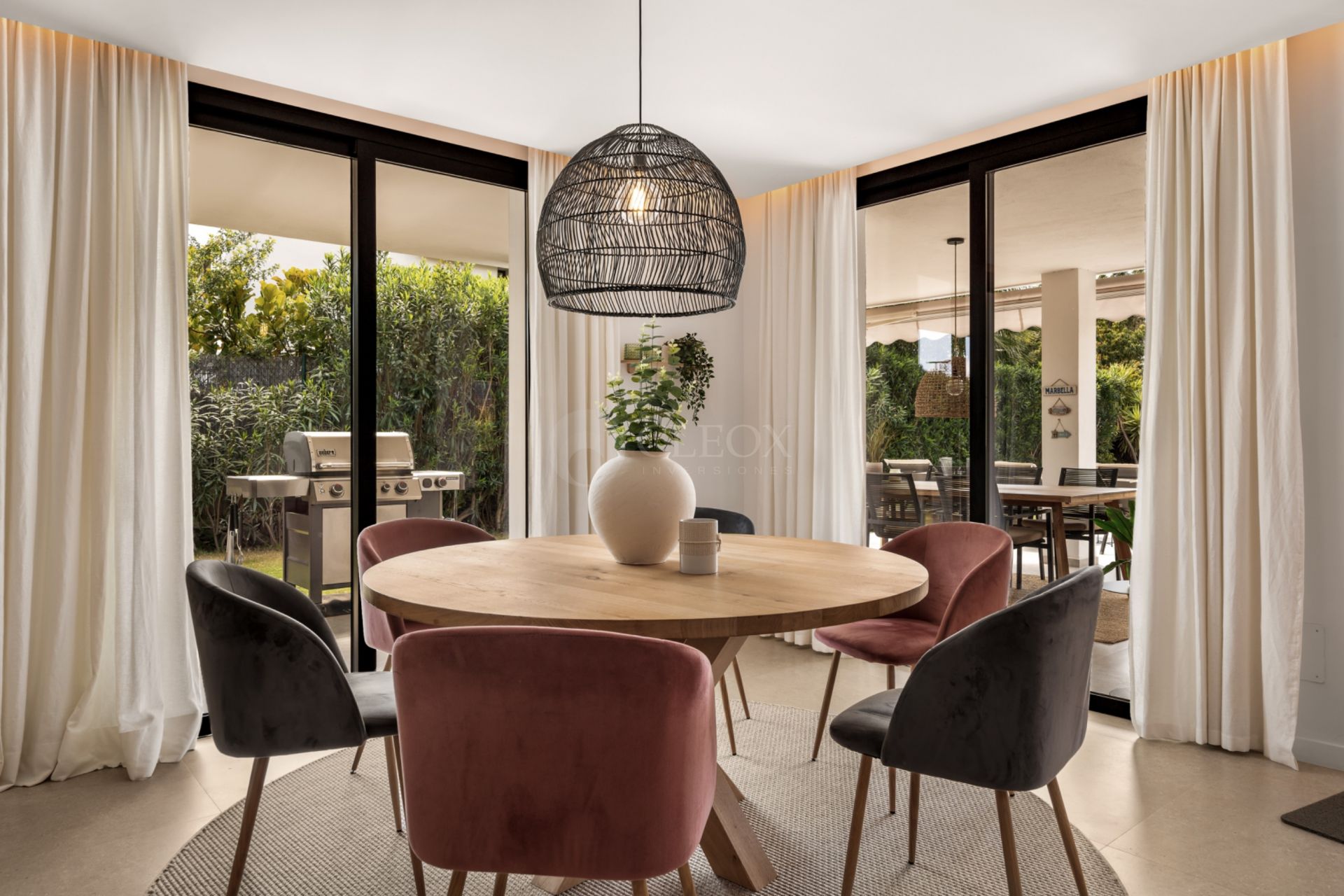 La vivienda ha sido diseñada para aprovechar al máximo la luz natural y la conexión con el exterior. En la planta principal, un elegante espacio de concepto abierto integra cocina, comedor y salón, creando un ambiente fluido y sofisticado. Los ventanales de suelo a techo conectan directamente con amplias terrazas, un jardín privado y piscina, ofreciendo un entorno perfecto para disfrutar durante todo el año.