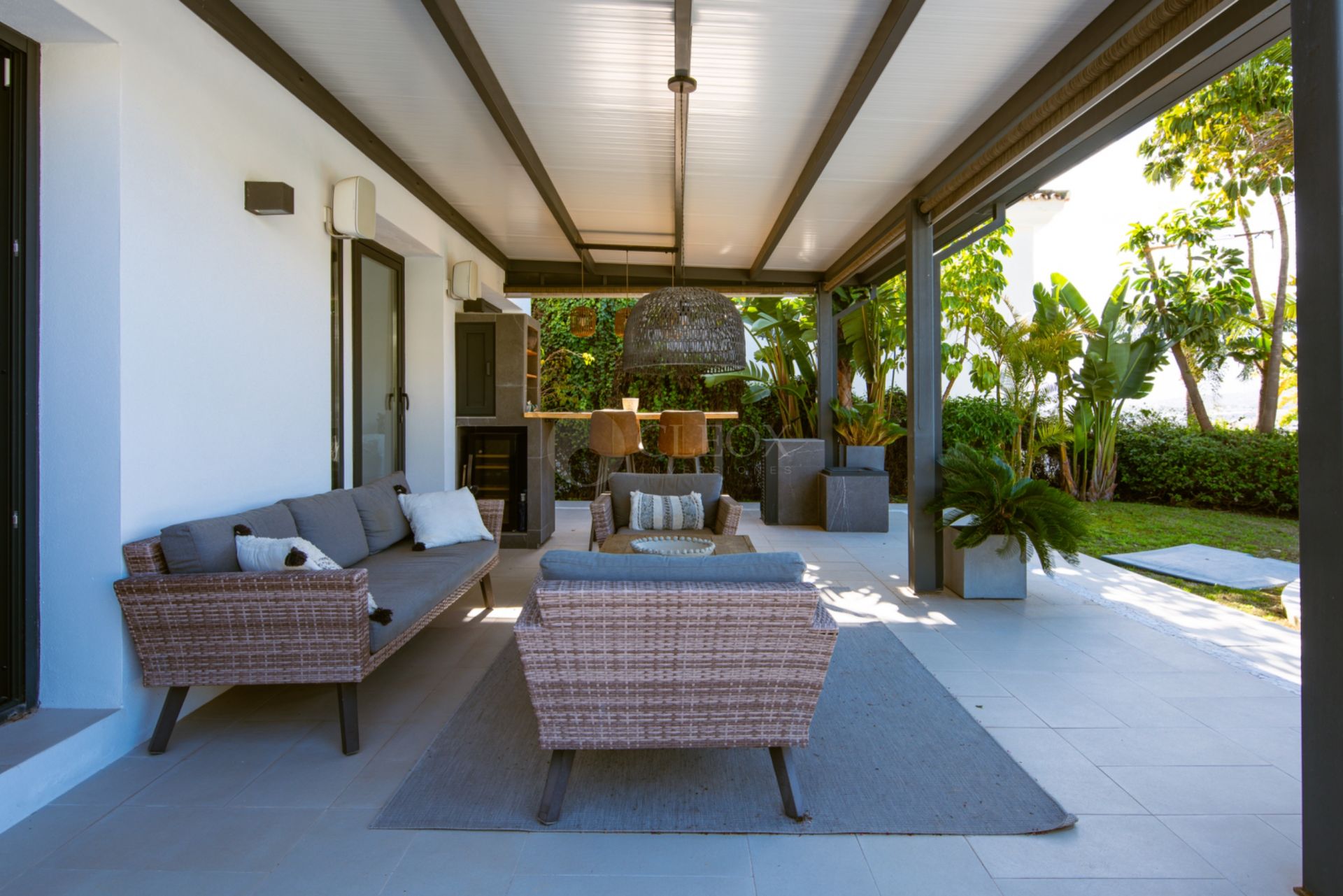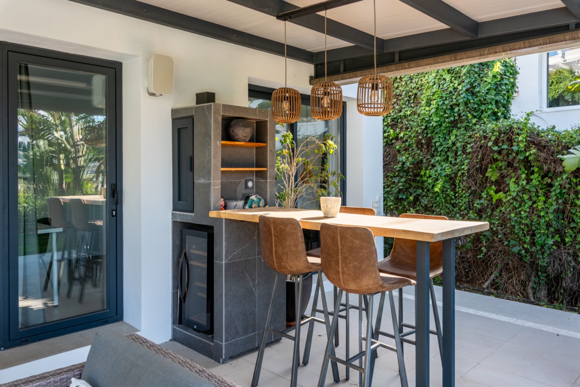 Ubicada en una zona residencial consolidada, a pocos minutos de los mejores campos de golf, la playa y todos los servicios, esta propiedad ofrece el equilibrio perfecto entre privacidad, diseño contemporáneo y conexión con el estilo de vida mediterráneo. La vivienda ha sido renovada con un estándar alto, pensada para quienes valoran el confort, la luz natural y los espacios bien definidos.