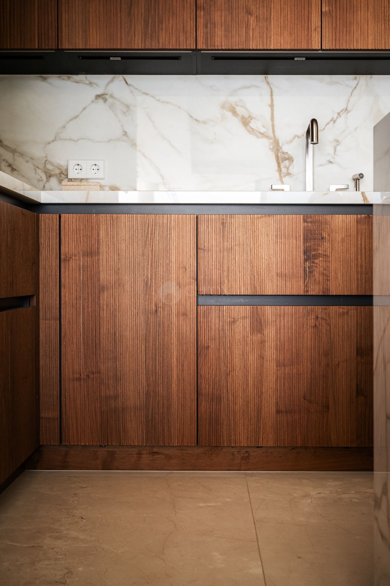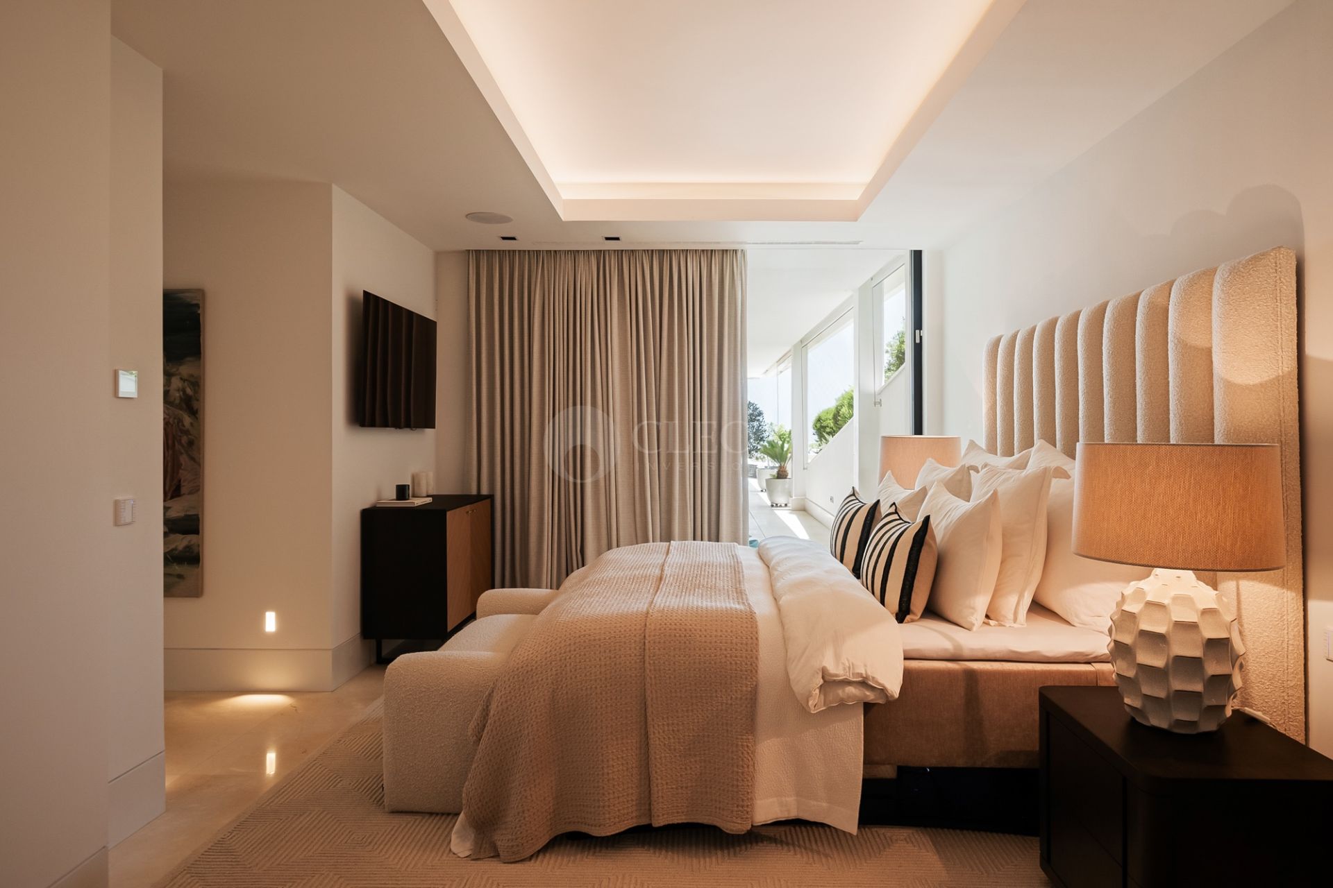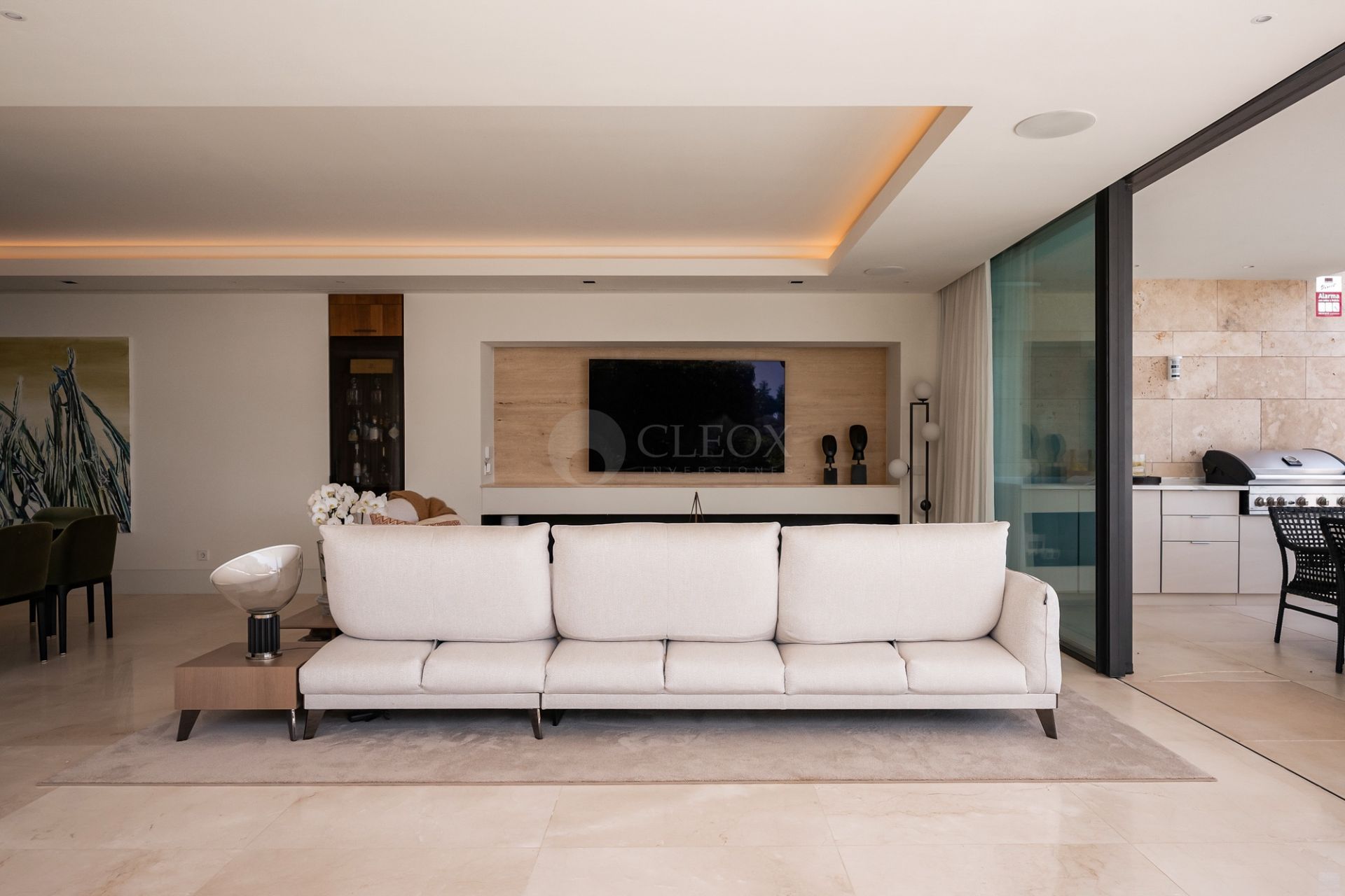 La vivienda ha sido diseñada para disfrutar del estilo de vida mediterráneo durante todo el año. El salón principal se integra con una elegante cocina abierta equipada con electrodomésticos Gaggenau y Miele, vinoteca de suelo a techo y ventanales automatizados que conectan interior y exterior de forma natural.
