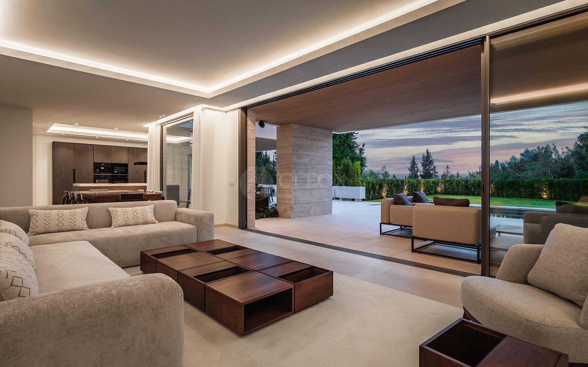 Наслаждайтесь современной системой умного дома, теплым полом, личным тренажерным залом, спа и винным погребом. Также есть гараж на 3 автомобиля и дополнительные навесы для 2 машин, обеспечивающие безопасность и удобство.