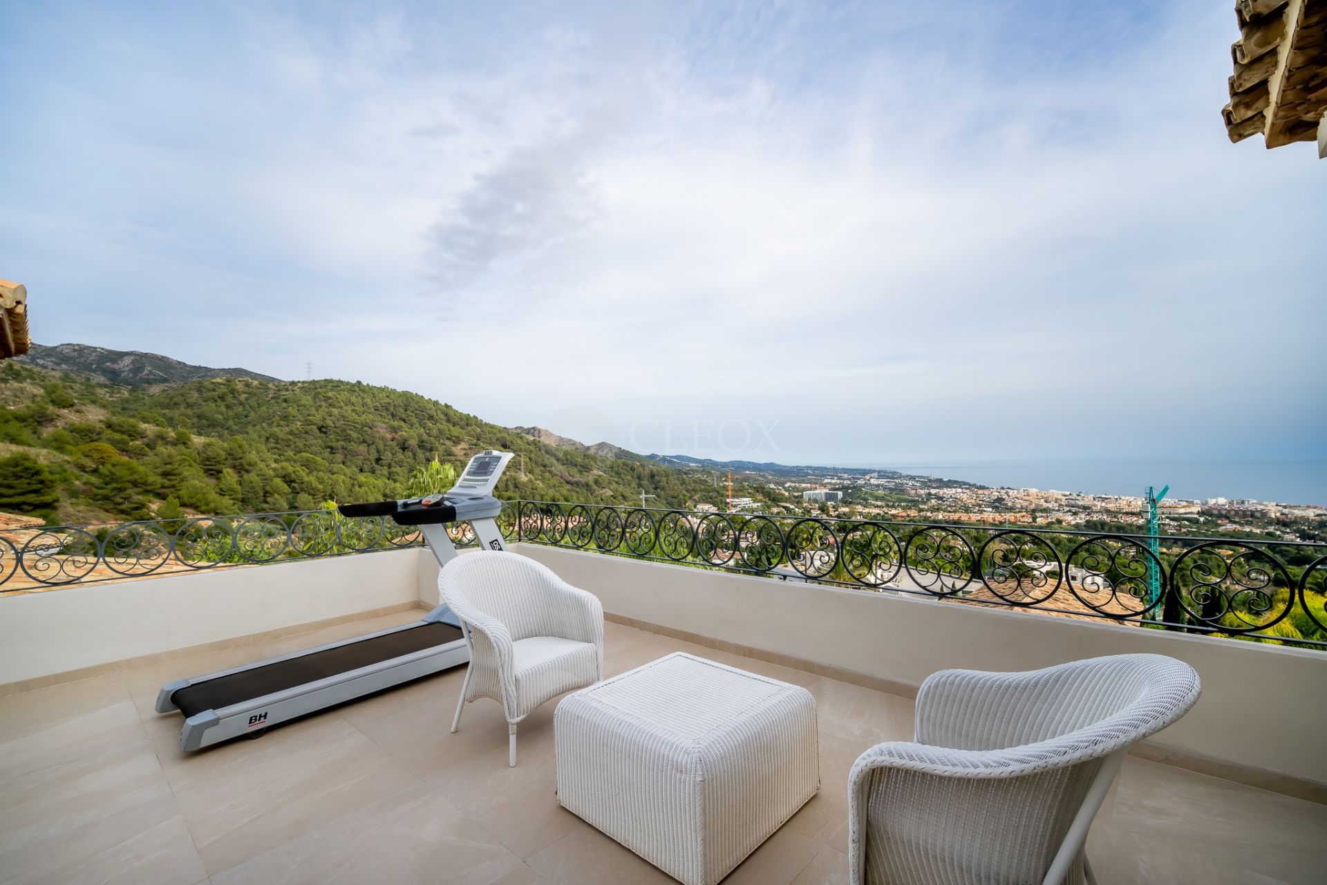 Вилла расположена на просторном участке с панорамными видами на Средиземное море и гору Ла Конча. Основной этаж спроектирован с акцентом на открытое пространство — гостиная, столовая и кухня плавно переходят на террасы и в сад, обеспечивая атмосферу света и уюта.