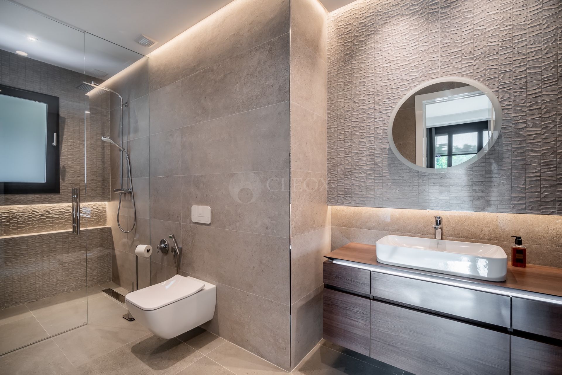 Внутри вы найдете гостиную с камином, изысканную столовую с винным погребом, современную кухню с техникой премиум-класса и мебель итальянского дизайна. Главная спальня предлагает просторный санузел, гардеробную и частную террасу с видом на море.