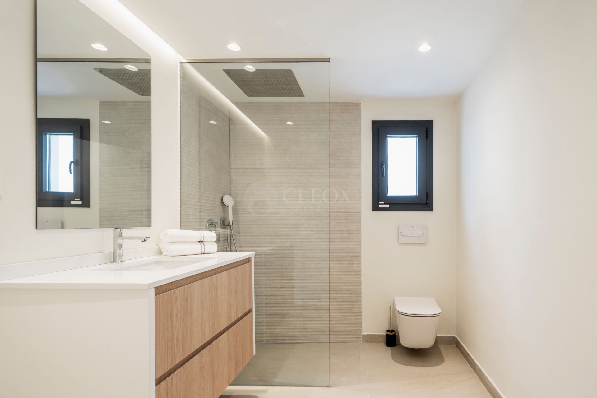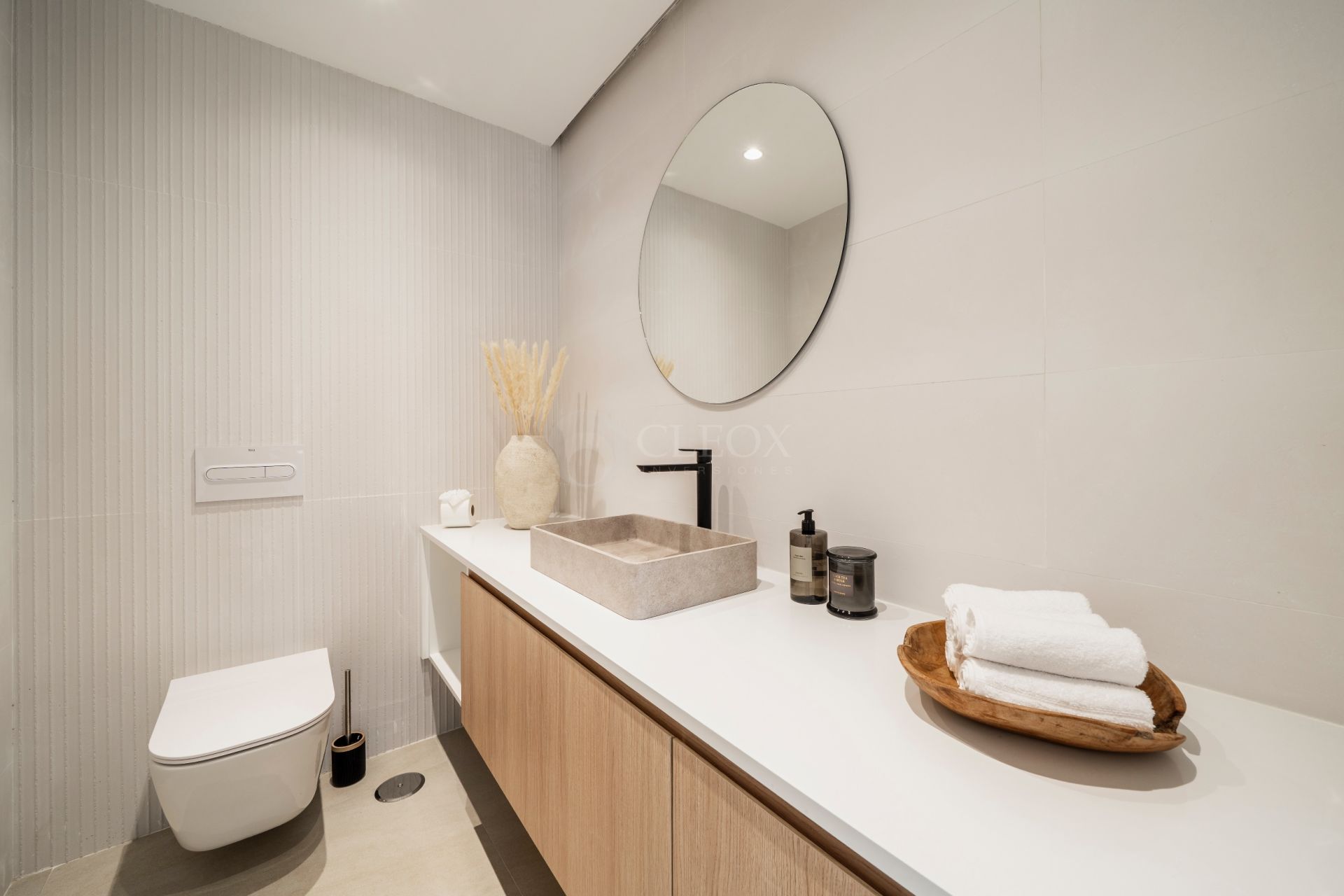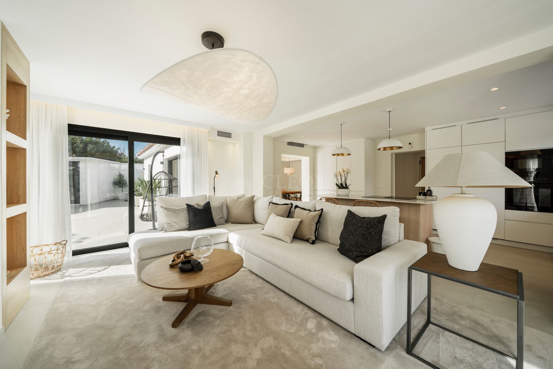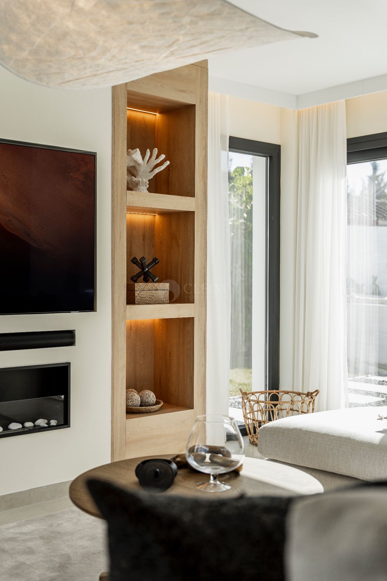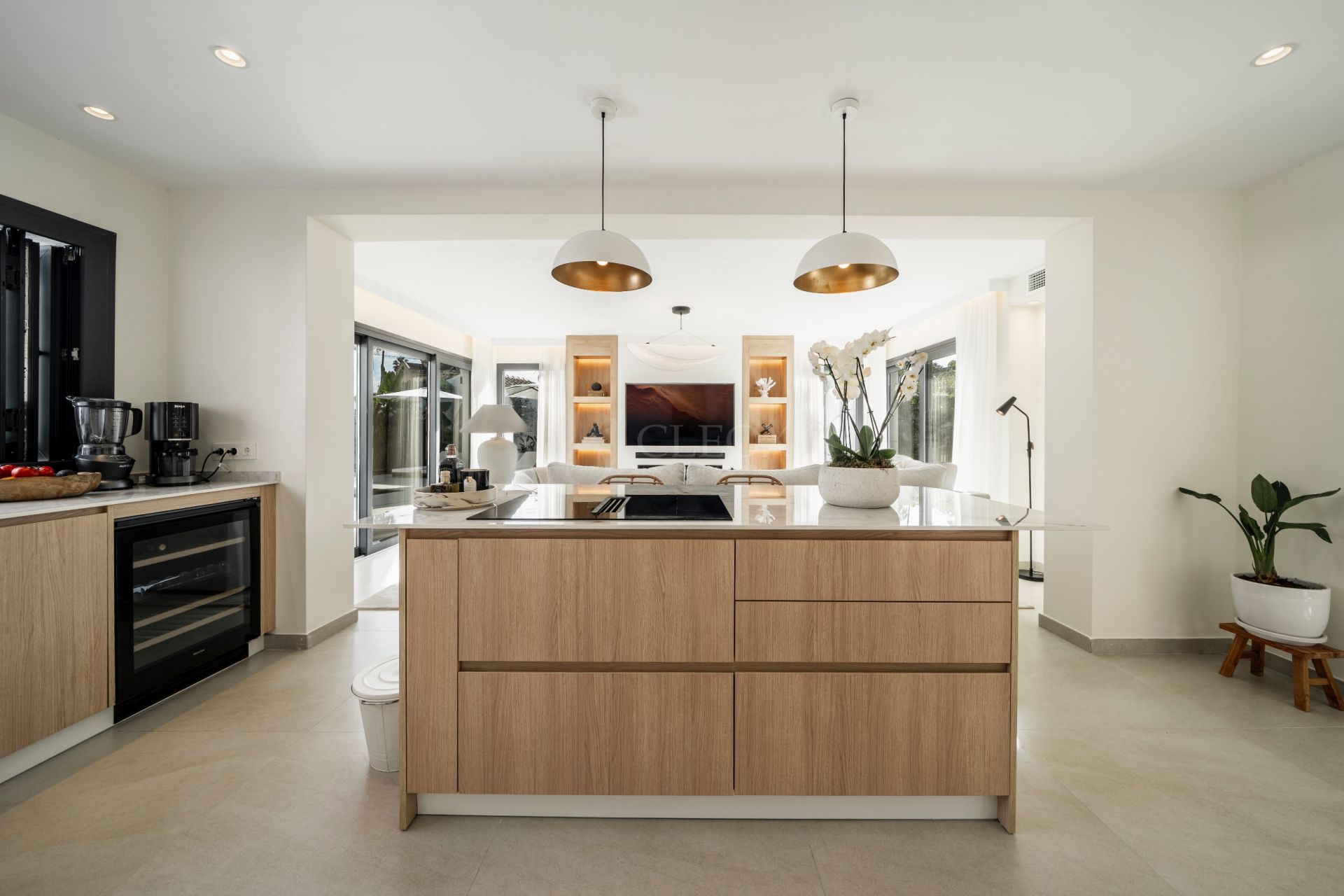 Villa Mimosa — это эксклюзивная роскошная вилла на продажу полностью отремонтированная и расположенная в престижном районе рядом с пляжем в Сан Педро де Алькантара Марбелья сочетая современный дизайн с функциональной планировкой для комфортной жизни она идеально подходит как для постоянного проживания так и для отдыха у Средиземного моря Ее уникальное расположение в уважаемом жилом районе Линдависта обеспечивает спокойную прибрежную атмосферу всего в одном километре от пляжа и известного ресторана El Ancla предлагая расслабленный образ жизни при этом рядом находятся все услуги которые может предложить Марбелья Вилла разделена на два уровня с продуманным разделением дневных и ночных зон в доме пять светлых спальных комнат с собственными ванными комнатами обеспечивающих комфорт и приватность для семьи и гостей Жилые помещения плавно переходят в зоны на свежем воздухе создавая открытую и дружелюбную атмосферу Просторные террасы идеально подходят для ужинов на улице загара и отдыха в приятной обстановке Небольшой в обслуживании сад и зона для тренировок на свежем воздухе добавляют дополнительную ценность для тех кто ценит активный образ жизни дома Villa Mimosa полностью готова к заселению предлагая современный стиль и высокое качество в каждой детали Сан Педро де Алькантара славится семейной атмосферой близостью к Марбелье и Пуэрто Банусу международными школами ресторанами магазинами и прекрасной набережной делая этот район одним из самых востребованных на Коста дель Соль Если вы ищете современную роскошную виллу у моря в одном из лучших районов Марбельи Villa Mimosa — идеальный выбор