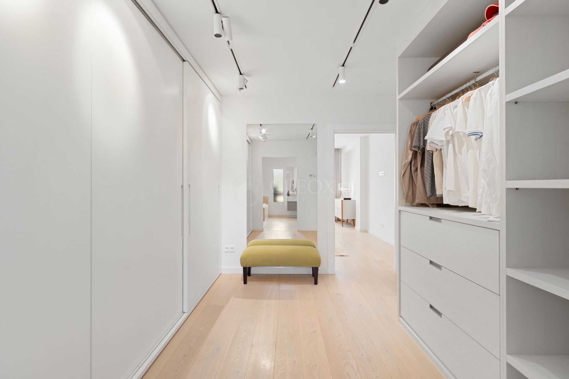 Основной этаж выполнен в формате open space: кухня премиум-класса с техникой Gaggenau, светлая гостиная и элегантная столовая зона. Из спален есть выход на просторную террасу с видом на море и горы — важное преимущество для тех, кто ищет villas for sale in Marbella или современную недвижимость с панорамными видами.