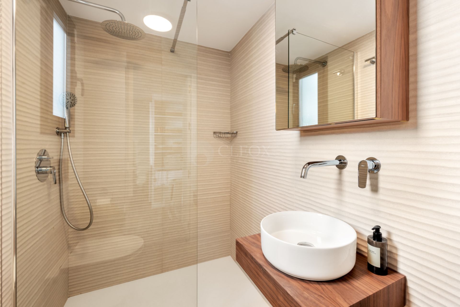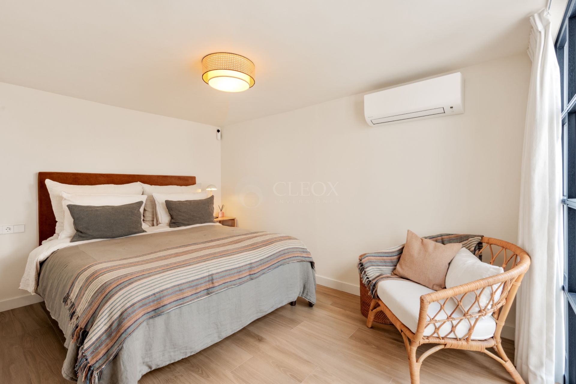 Вилла включает три спальни с ванными комнатами, включая просторную мастер-спальню с гардеробной и выходом на террасу с видом на море. Также имеется отдельная гостевая спальня, обеспечивающая дополнительную приватность.