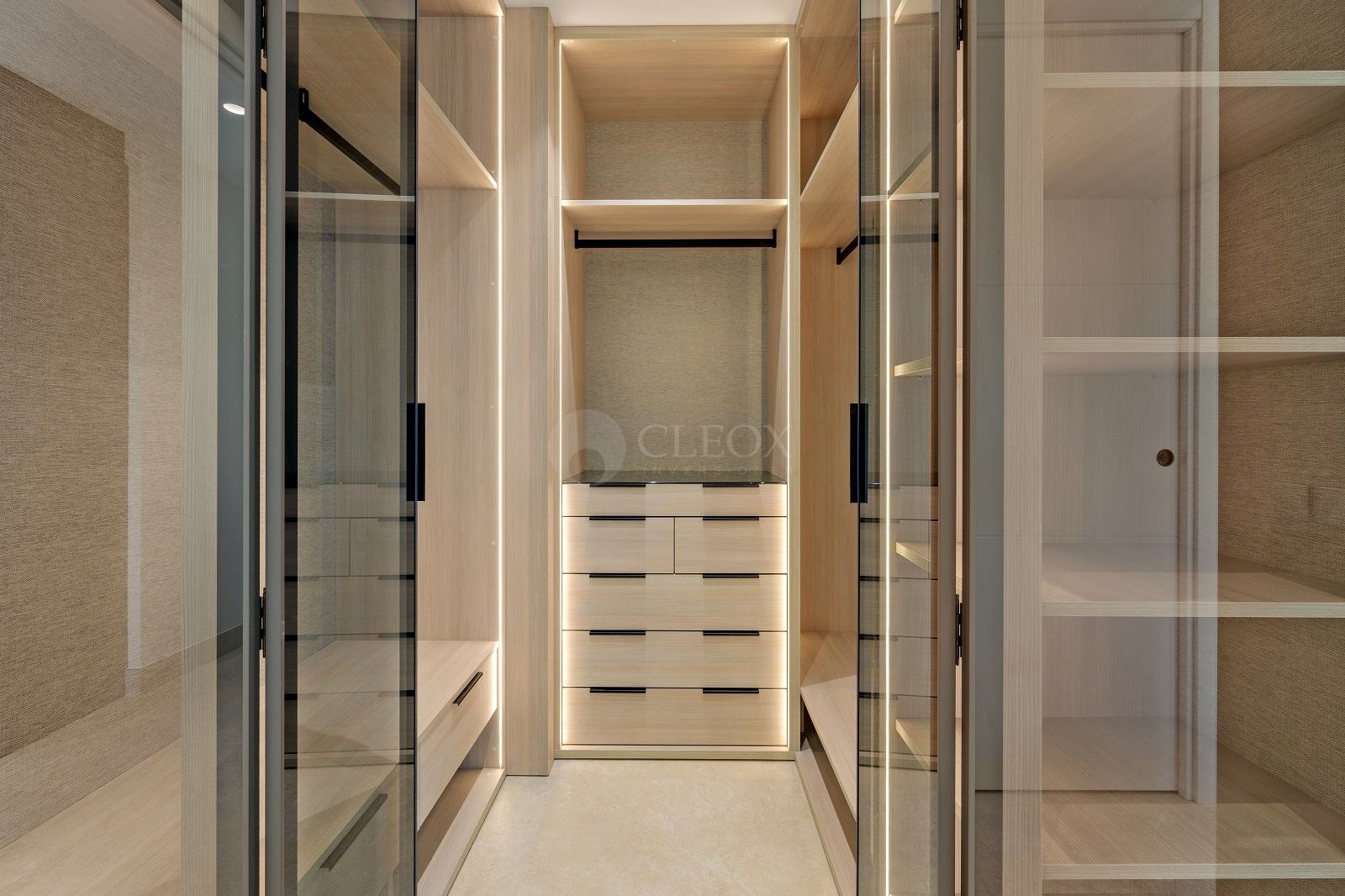 Современная кухня оборудована премиальной немецкой техникой и Thermomix. Просторные спальни и стильные ванные комнаты выполнены с использованием высококачественных материалов. Также есть отдельный кабинет со стеклянными шторами, прачечная и тщательно продуманные детали интерьера.